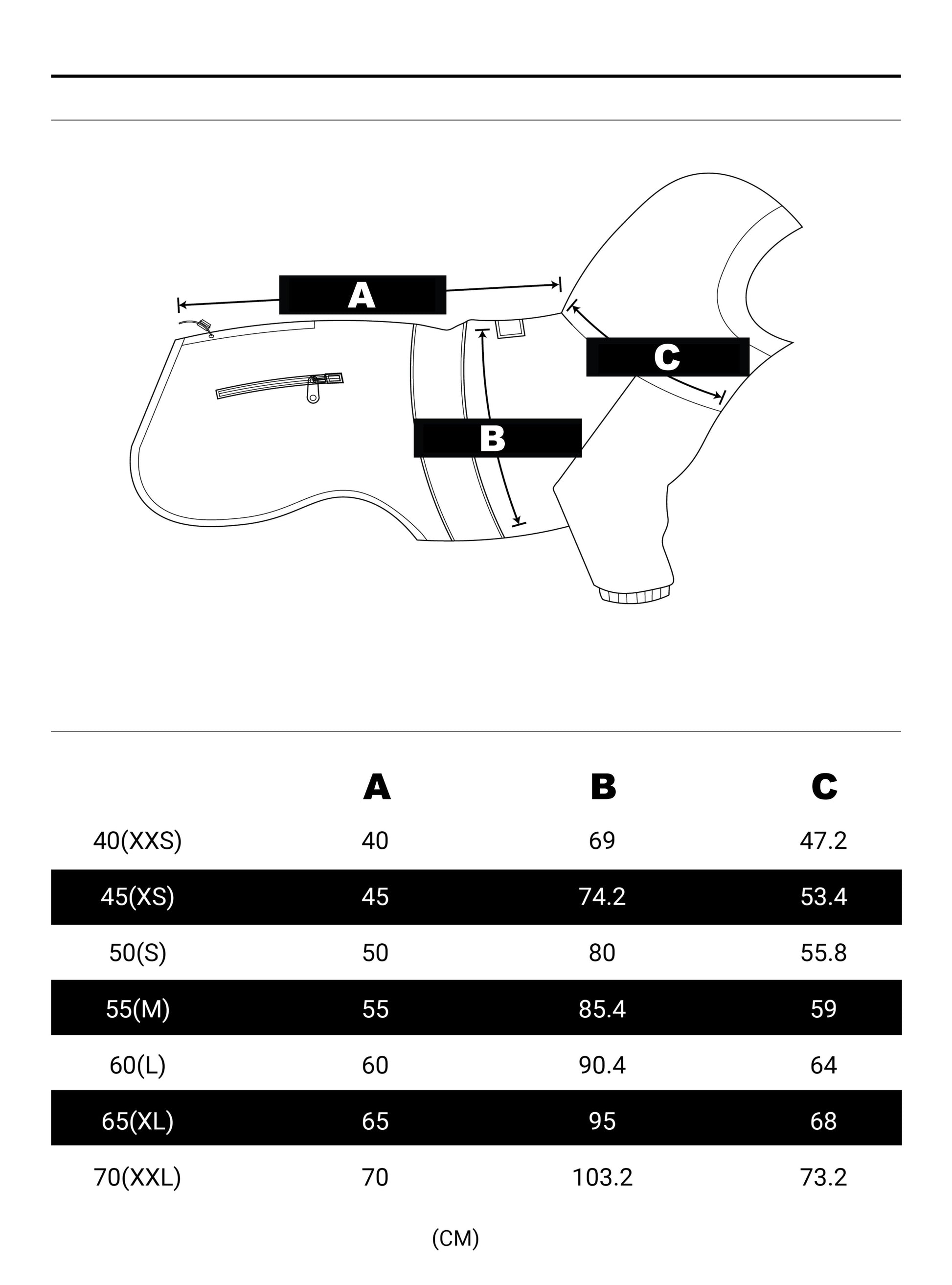 Tableau des tailles des vêtements pour chiens : imperméables et ponchos pour chiens